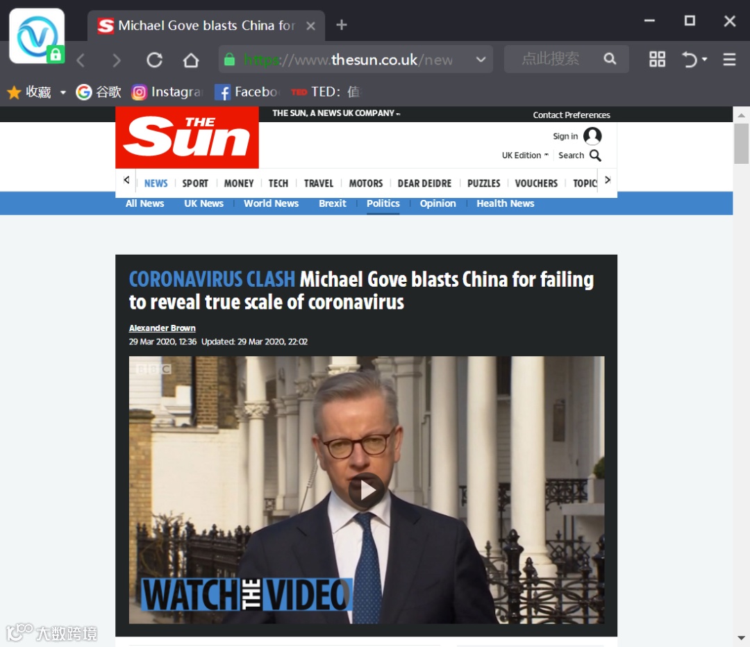 英国保守派政治人物迈克尔·安德鲁·戈夫(Michael Andrew Gove)3月29日,在Google公开媒体上指责中国在日益激化的外交争端中隐藏了冠状病毒危机的真实性!
