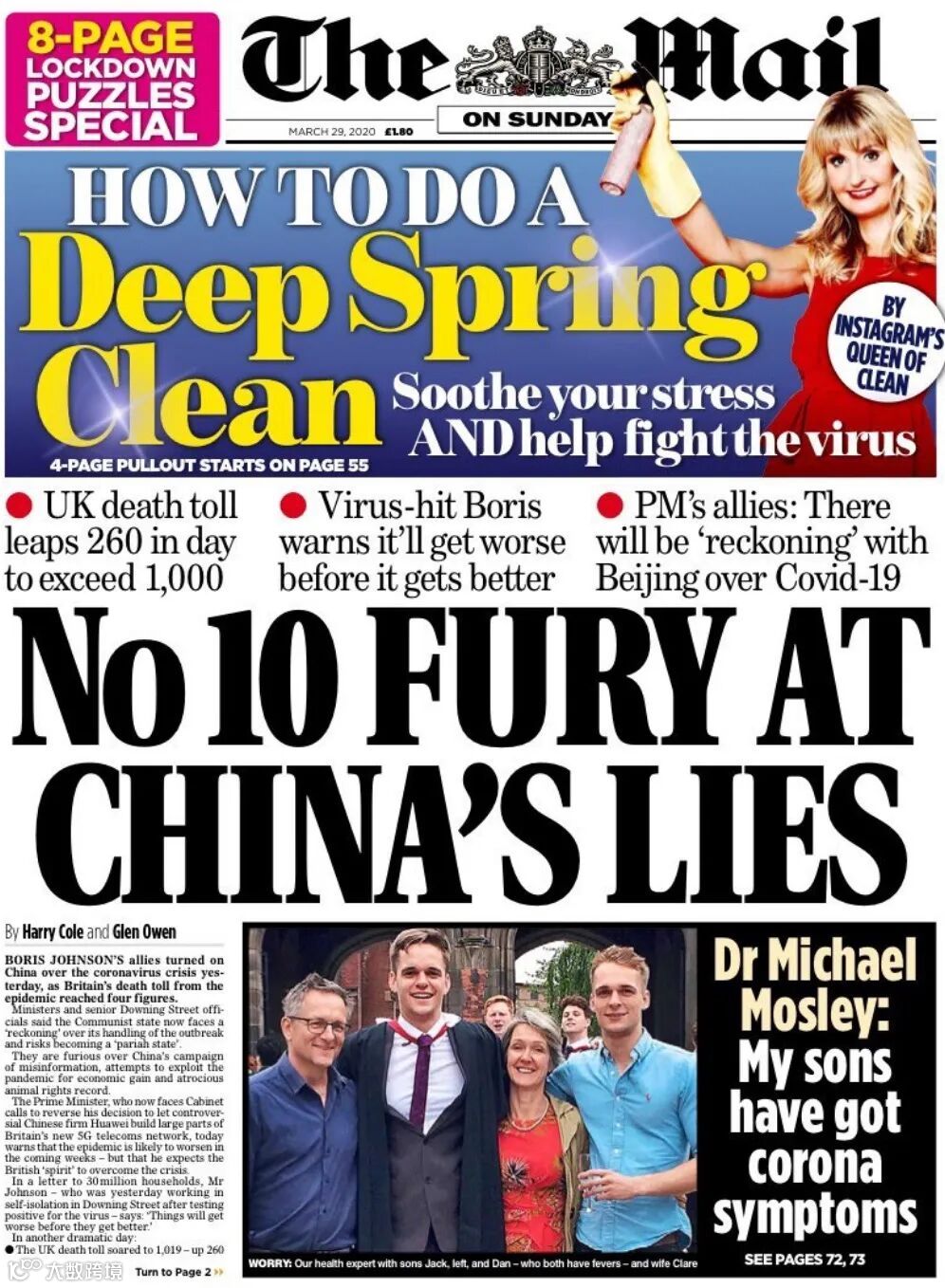 在The Mail英国头版直接报道唐宁街10号对中国撒谎愤怒