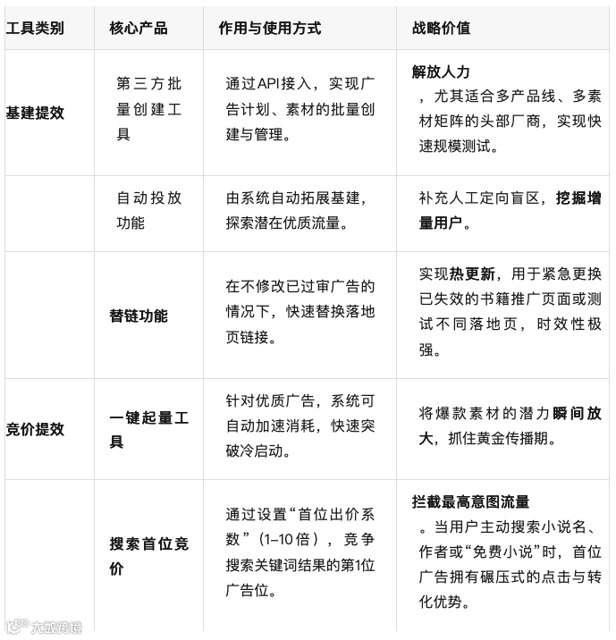 搜索卡位:针对已验证的爆款小说名称、作者名及“免费看书”等泛关键词,设立独立搜索广告计划,启用 “搜索首位竞价” ,高价拦截核心意图流量。