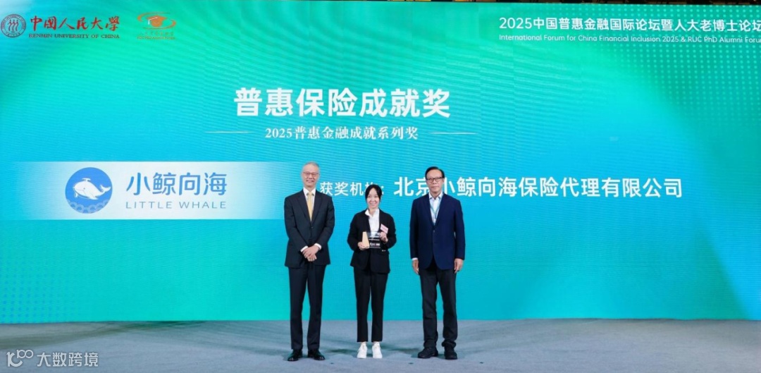 2025年9月25日,由中国普惠金融研究院(CAFI)学术支持、包容会主办的2025中国普惠金融国际论坛在北京隆重举行。在盛大的颁奖典礼上,北京小鲸向海保险代理有限公司凭借在普惠金融领域的创新实践与社会服务成果,荣膺2025普惠保险成就奖。这一殊荣不仅是对小鲸向海服务成果的认可,更是对保险行业践行普惠金融理念的激励。