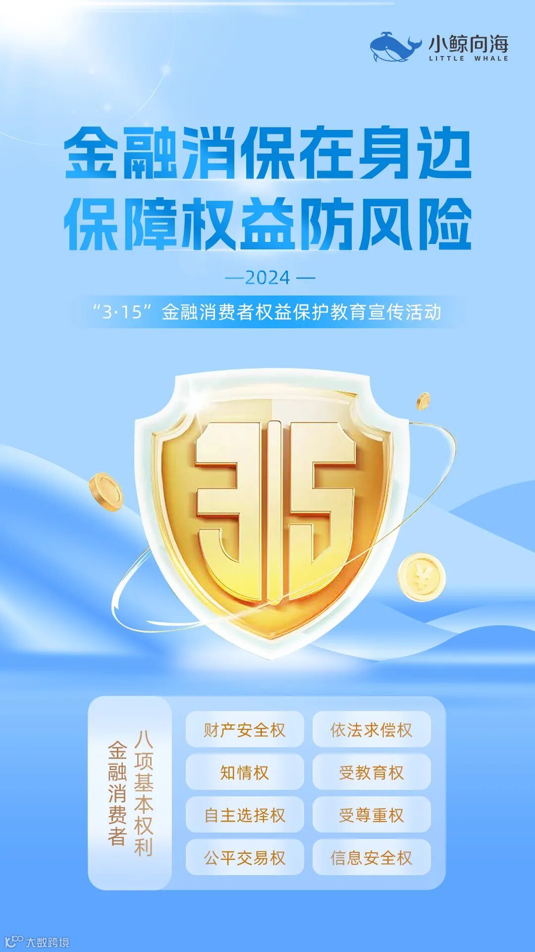 为全面落实党的二十大精神和中央金融工作会议、中央经济工作会议部署要求,不断践行金融工作政治性、人民性,切实提升消费者金融素养及风险防范意识,小鲸向海在全公司范围内开展“3•15”金融消费者权益保护教育宣传系列活动。
