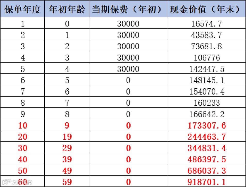 第60个保单年度,现金价值高达918701元。