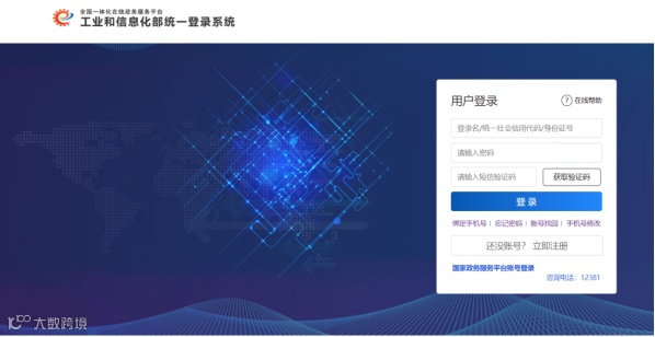 ●点击以上标注的任意一个【申报】按钮,会跳转到【工业和信息化部统一登录系统】的登录页面进行注册/登录。