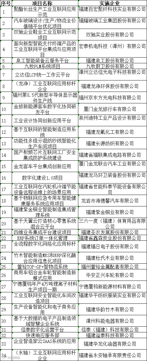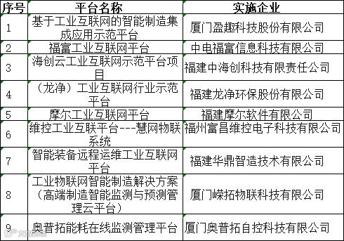附件:福建省第一批工业互联网示范平台和应用标杆企业拟入选名单