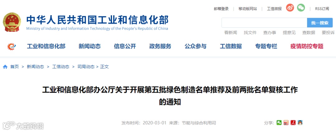 附件:工业和信息化部办公厅关于开展第五批绿色制造名单推荐及前两批名单复核工作的通知(点击阅读原文获取附件)
