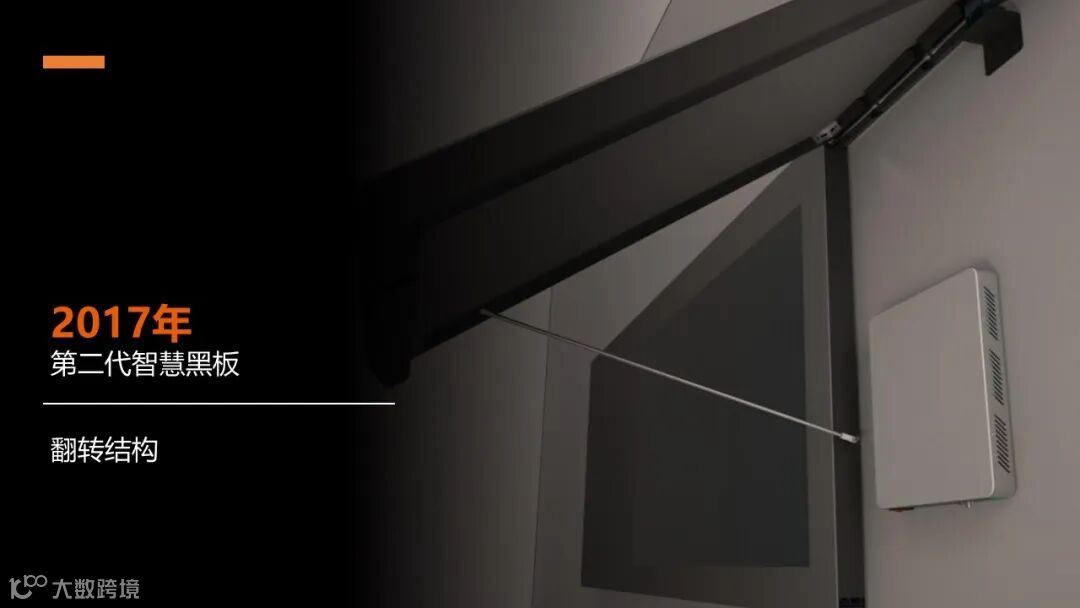 2017年,第二代智慧黑板也问世了。在这一次的产品迭代中,欧帝开始把结构列入了产品设计的核心需求之一,二代采用了翻转结构,改变了黑板在教室中管理维护的效率。