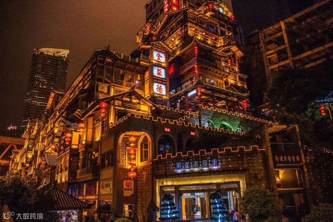 洪崖洞的夜景堪称一绝,据说《千与千寻》的灵感便是来源于此。以最具巴渝传统建筑特色的吊脚楼为主体,依山就势,顶层可远观江景,入夜后灯火通明,恍若进入童话世界。