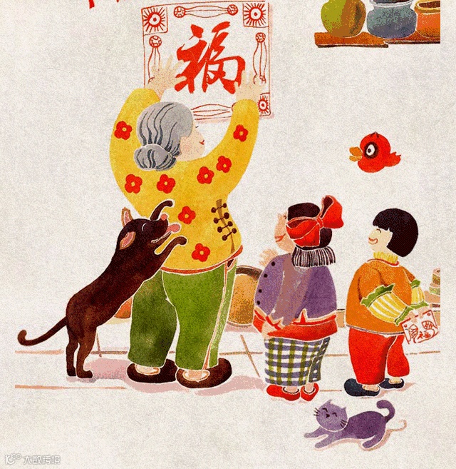 春节挂贴年画在城乡也很普遍,浓黑重彩的年画给千家万户平添了许多兴旺欢乐的喜庆气氛。