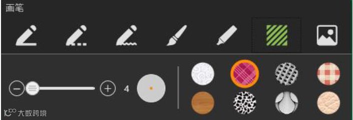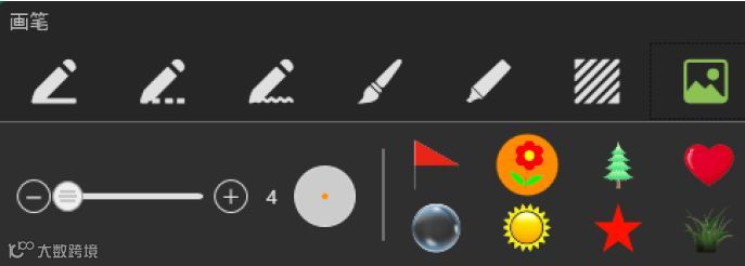 画笔工具:点击画笔图标,依次可以选择线虚浪毛半透明纹章像等类型,并可拖动滑条调整画笔粗细更改颜色或者内容;软件支持多指书写。