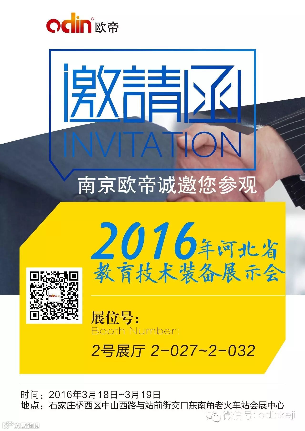 2016年河北省教育技术装备展示会将于3月18日-3月19日在石家庄桥西区中山西路与站前街交口东南角老火车站会展中心展开,欧帝科技作为教育装备专业提供商应邀参展。