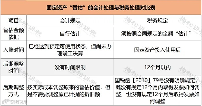 由于《国家税务总局关于贯彻落实企业所得税法若干税收问题的通知》(国税函[2010]79号)对于暂估计税基础固定资产的后期调整方式未给出明确规定,因此各地税务机关或税务人员按照各自不同理解和观点执行,存在很大的税收争议,企业需要特别注意该问题可能给企业带来的税务风险。