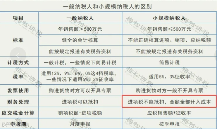 一般纳税人与小规模纳税人的区别: