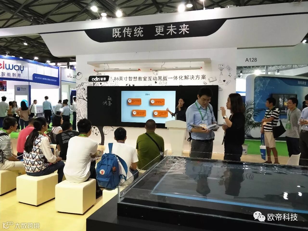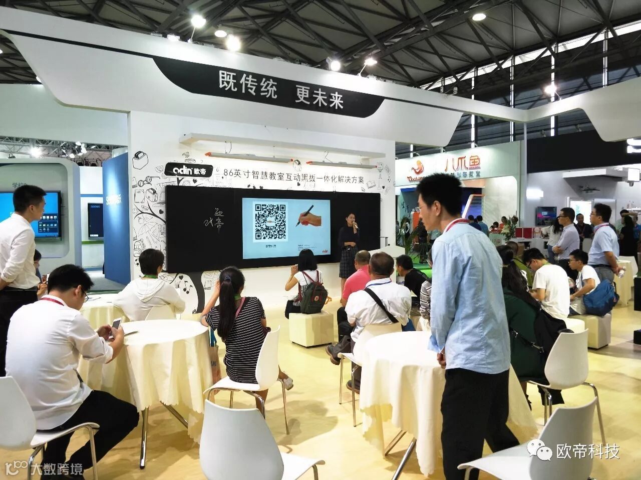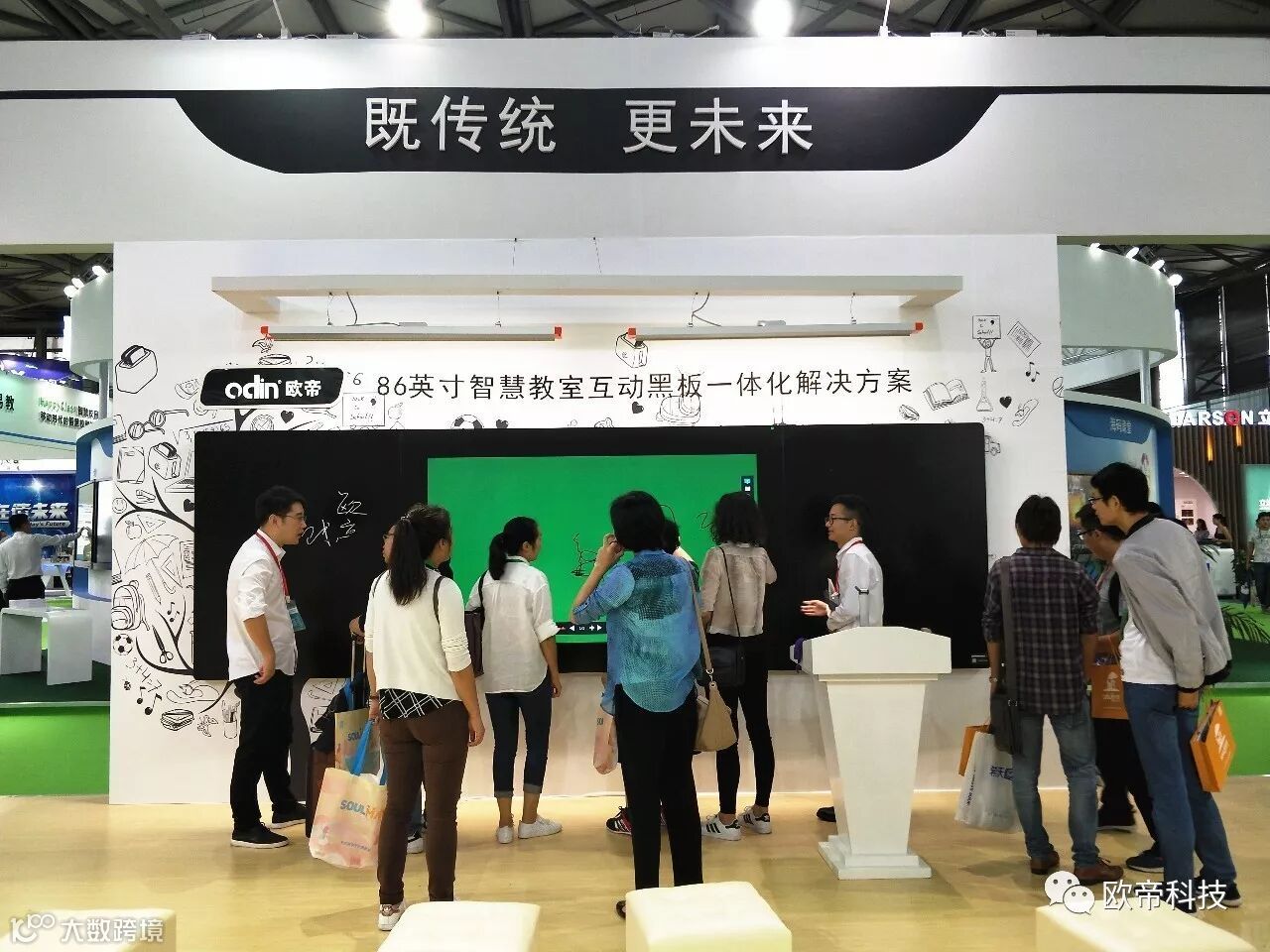欧帝科技作为智慧教育行业龙头企业,携带强势产品智慧教室互动黑板系统亮相上海国际展览中心现场,带来了多种教学场景下的解决方案。欧帝的每一块黑板都内置丰富的教学应用软件和优质的教学资源,让每间教室、每所学校都不再是孤立的个体,为班级、校际间互动提供了媒介。同时,上课时教师的活动范围不再局限讲台附近那一方小小的空间。通过触控、平板和快拍仪,学生可以即时将作业直接传到黑板上,教师也大可走到学生中去控制黑板,不仅方便了师生的交流与互动,还提高了课堂效率。