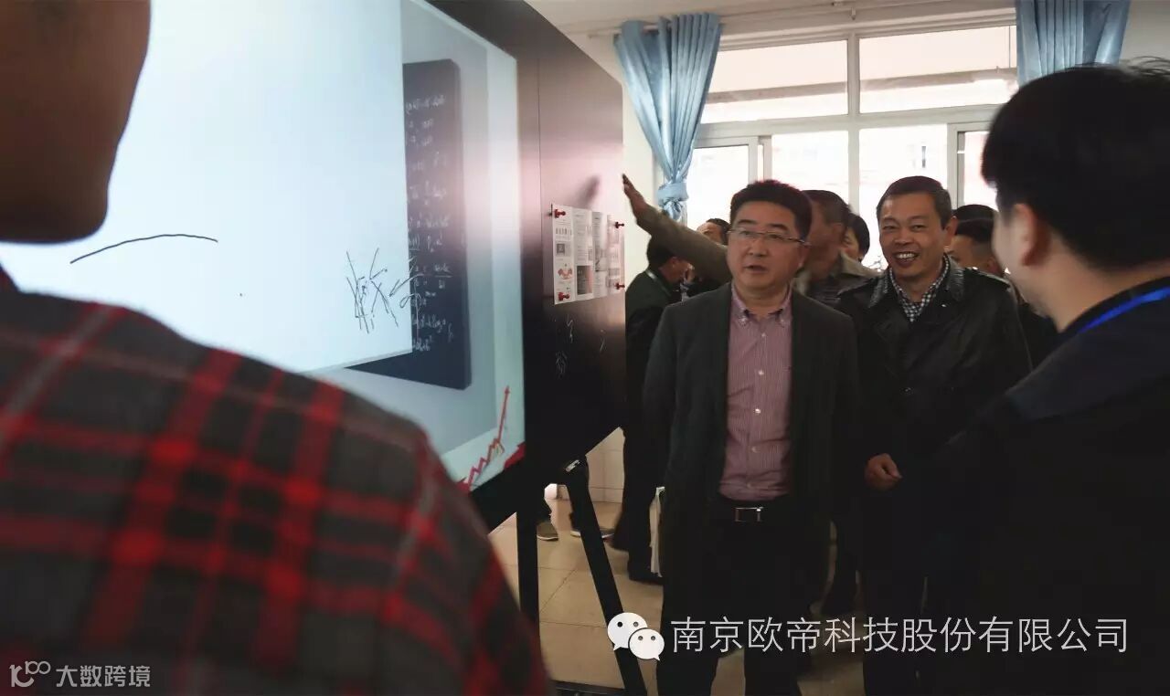 本次基础教育装备展分为信息化、创新实验室、后勤装备三大板块。在信息化装备领域中,欧帝科技的主打产品智慧教室互动黑板,集电容触控、液晶显示、电脑主机于一体,以全球领先的电容触控技术将传统教学黑板与可感知的互动黑板无缝对接,满足课堂粉笔/水笔书写、多媒体教学、触控互动的多元化需求,集合了创新、简单、安全、环保四大优势,采众家之长,开创了“智慧课堂”新局面。通过现场精准的演示,镇江市教育部门一行领导瞬间感受到最佳的教学体验。