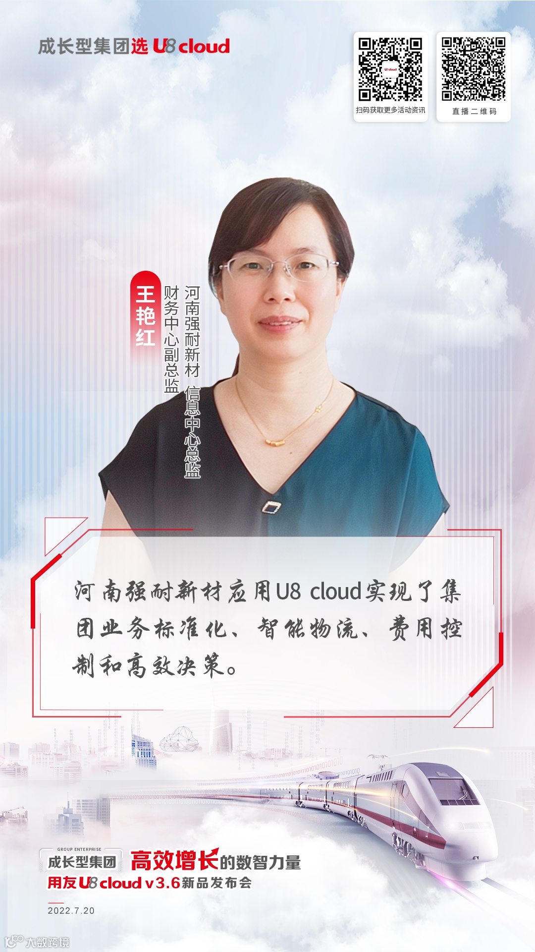 7月20日,以“成长型集团高效增长的数智力量”为主题的用友U8 cloud v3.6新品发布会在线上成功举办。会上,来自业内的企业家、专家以及生态伙伴等共同为用户带来U8 cloud全新版本的深入解读展示。