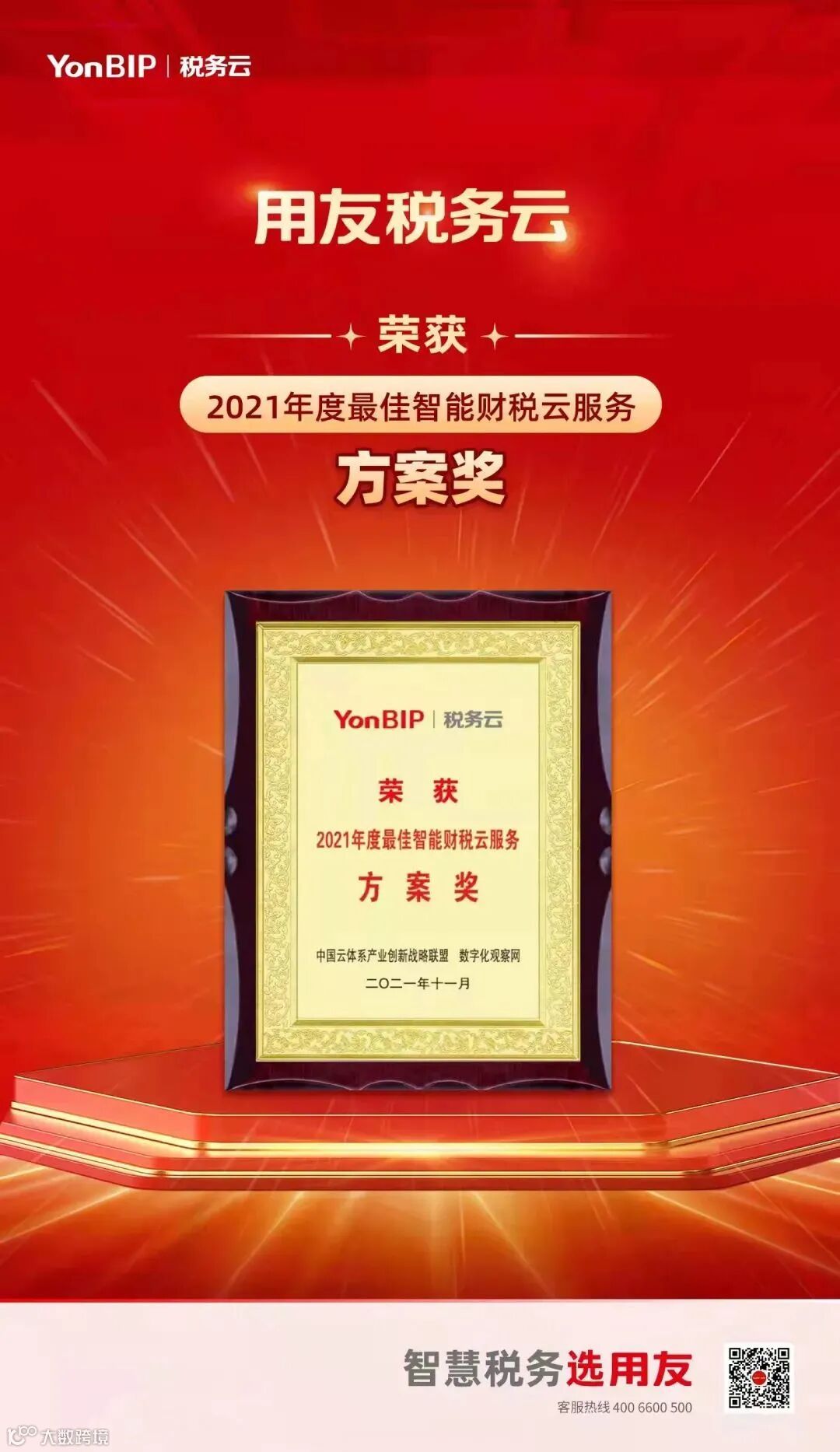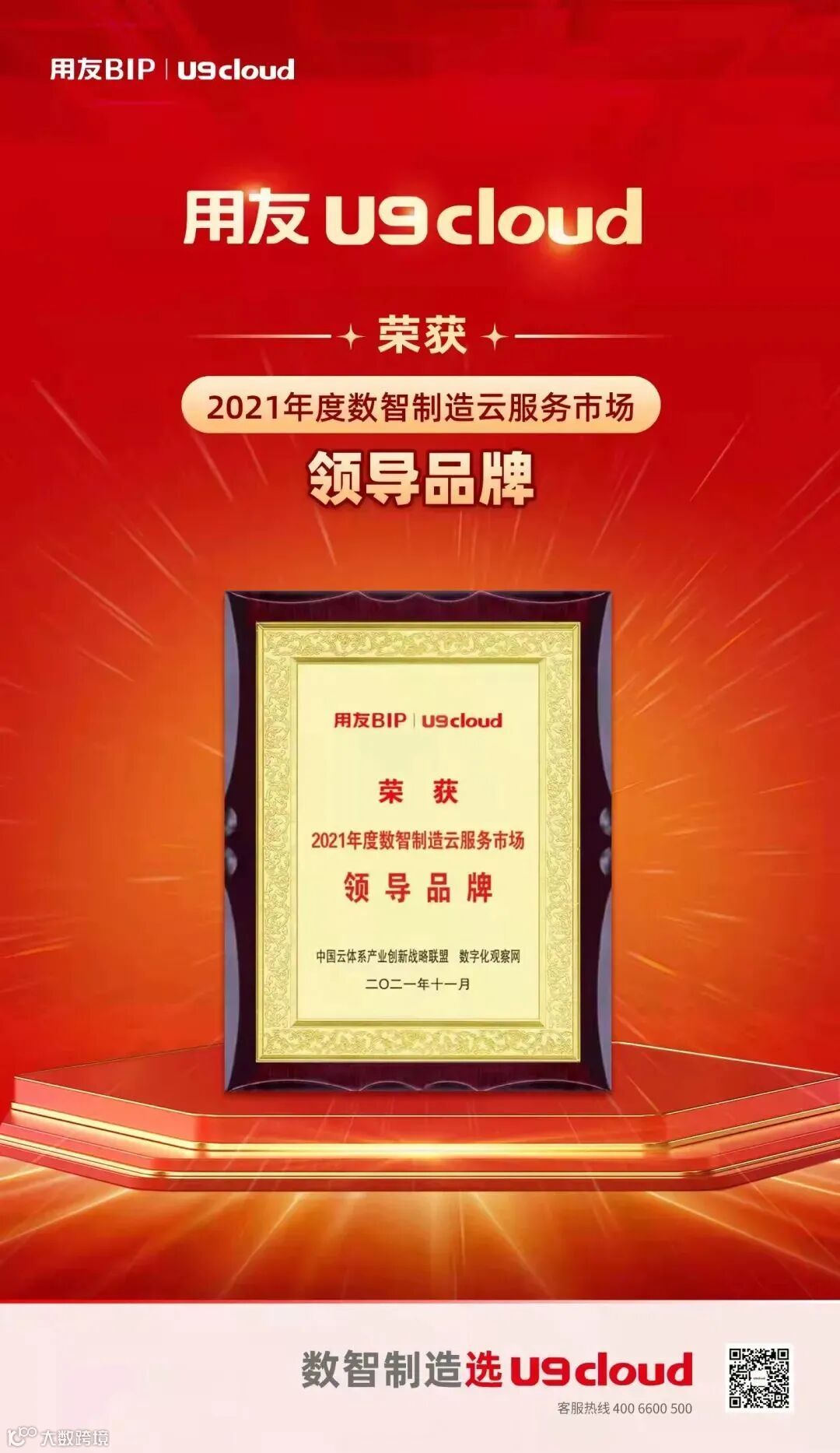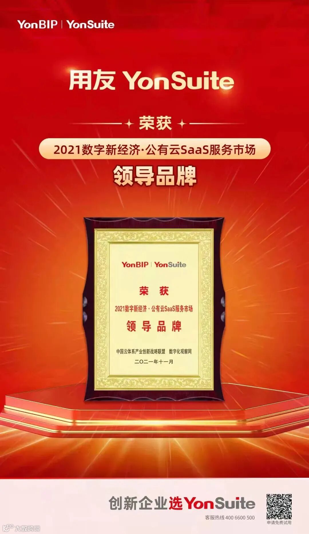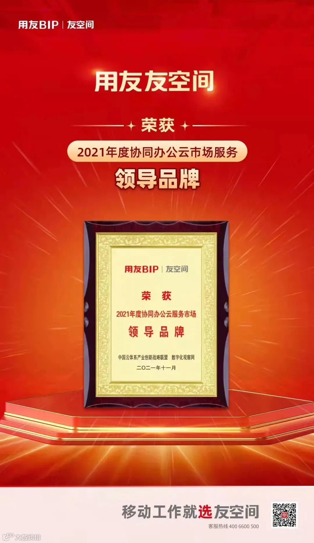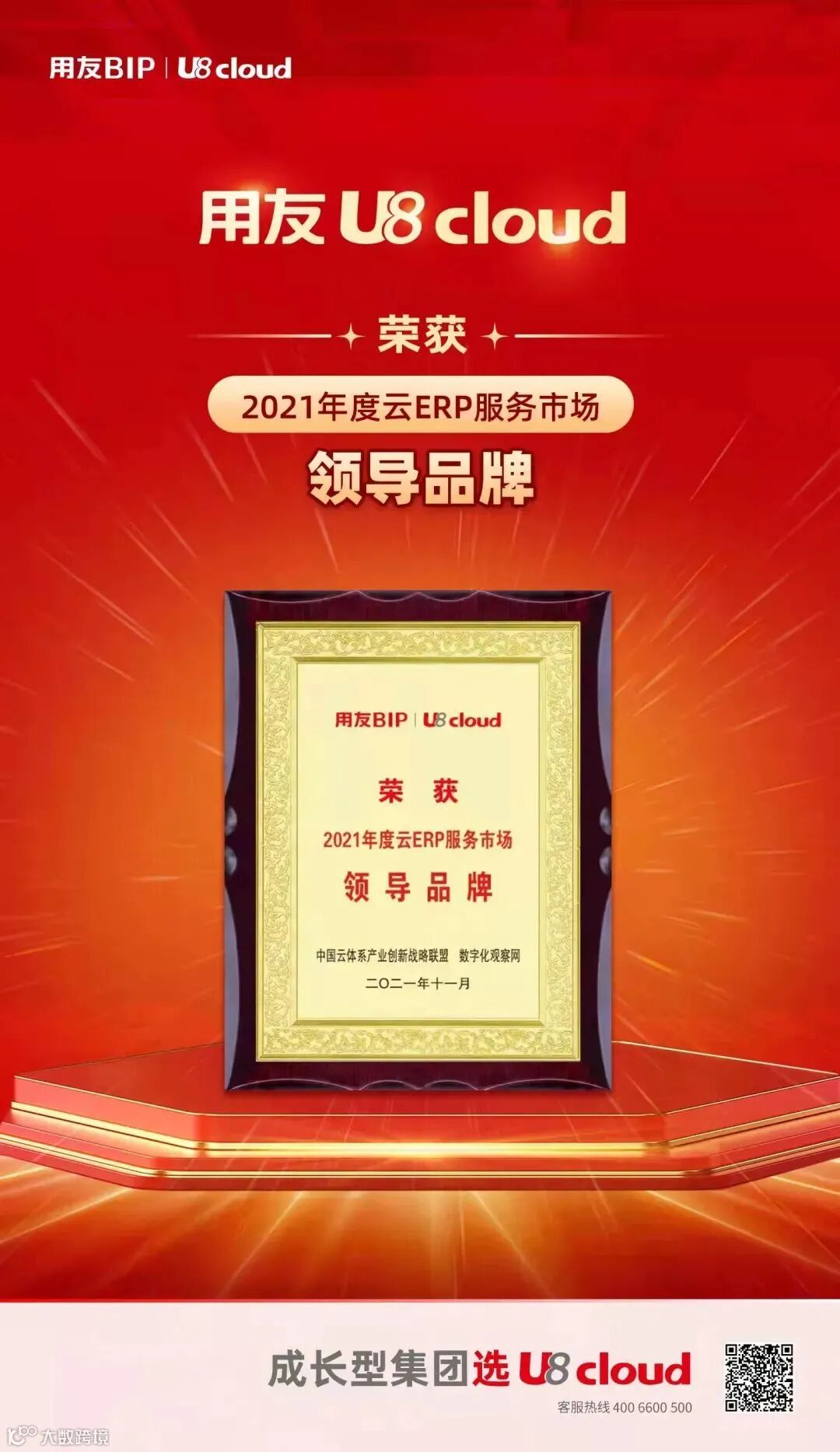 本次获奖,是市场对用友云服务的认可,更是对用友云服务的激励,我们将继续努力,持续创新,为中国企业提供更先进、更贴心的数智服务!