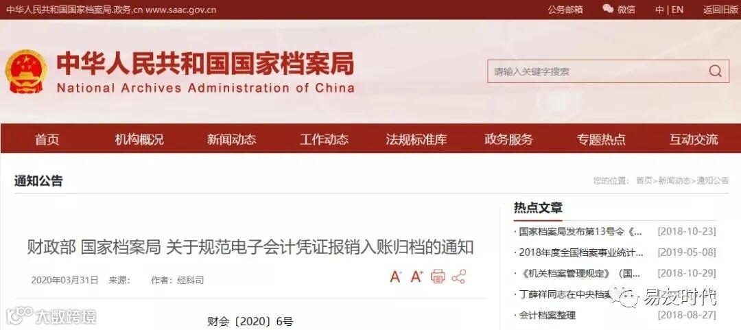 财政部 国家档案局 关于规范电子会计