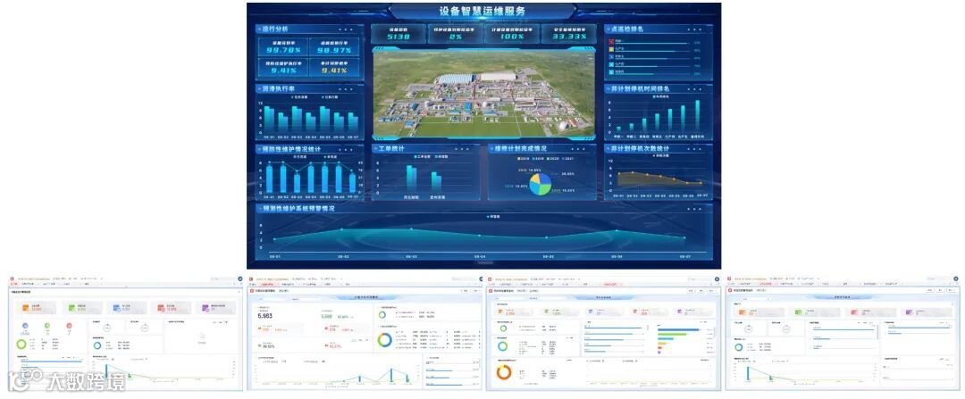 通过数据大屏展示设备核心运维指标,为公司管理者提供管理提升的核心决策数据支撑,设备生命周期看板、计量器具看板、特种设备看板、点检定修看板为各级主管提供直观可视的主题数据展示。