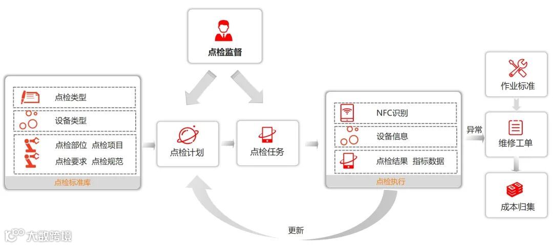 设备管理的现场作业,通过移动化+智能测温测振实现现场点巡检作业的实时化,在线化和高效化。