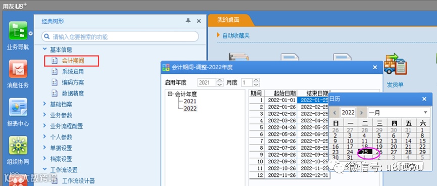 任一业务模块12月结账后产生的下一年会计期间,其起始、结束日期是否可以修改?