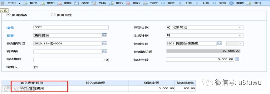 开账结转,转账定义--费用摊销,设置了待摊销凭