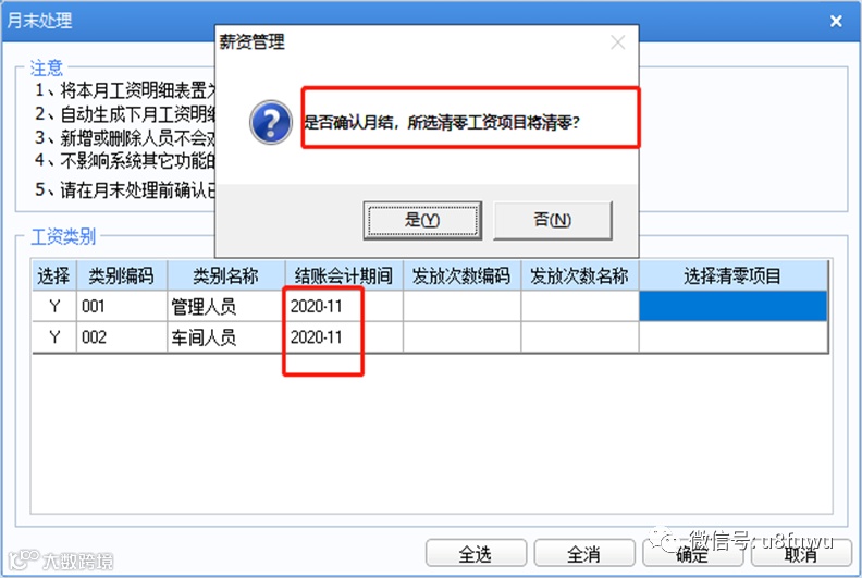 薪资管理最后一个月结账时是否提示选择清零项?