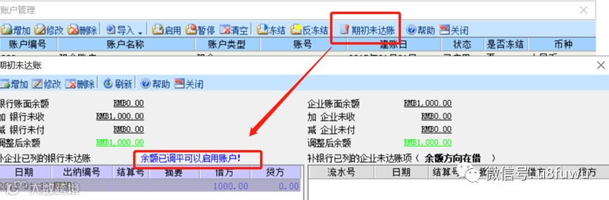注意:如果期初未达账里面又显示“余额已调平可以启用账户”,但是启用还是提示账户期初不平衡,需要提交问题,后台处理。