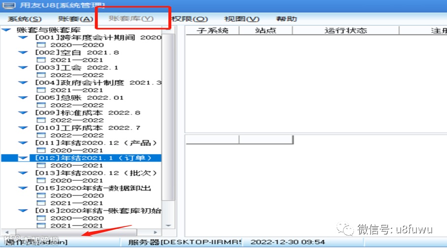 账套库初始化,登录系统管理,账套库显示灰色?
