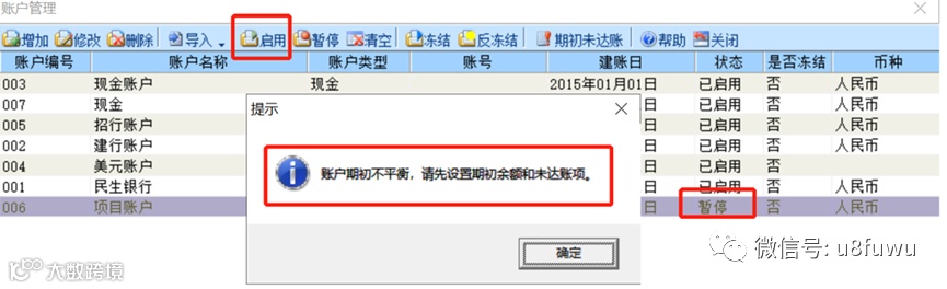 出纳管理新年度启用账户时提示:账户期初不平