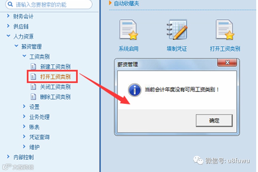 薪资管理打开或者删除工资类别时系统提示:当