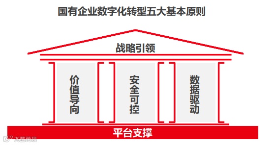 国有企业在数字化转型要遵守战略引领、价值导向、安全可控、数据驱动、平台支撑等五大基本原则,坚持场景驱动与技术引领两头并进。