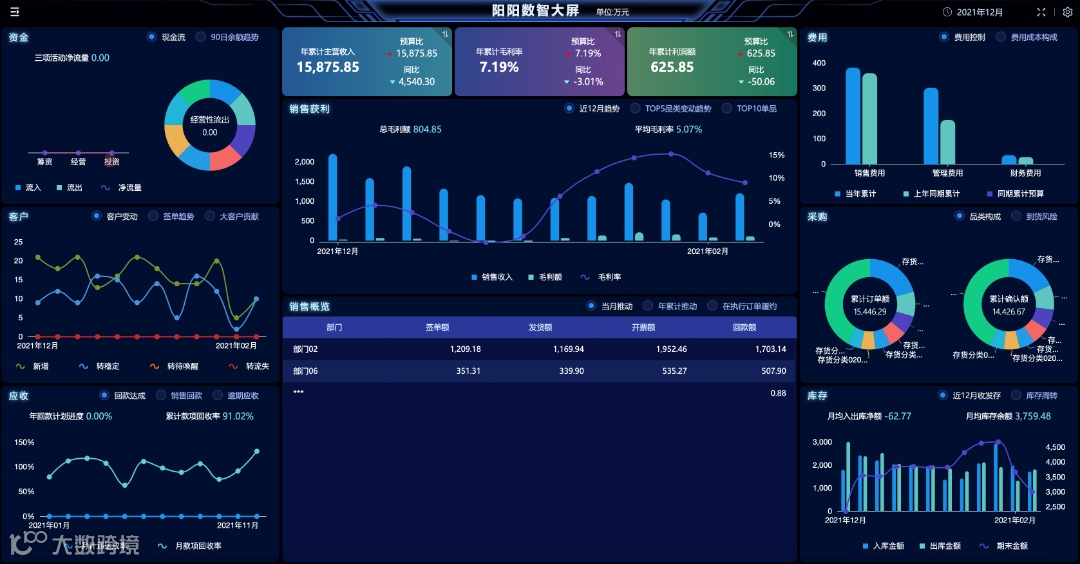 ☁ 数钥分析云,创建多角色数智大屏,让不同管理人员的数据需求瞬间可见。