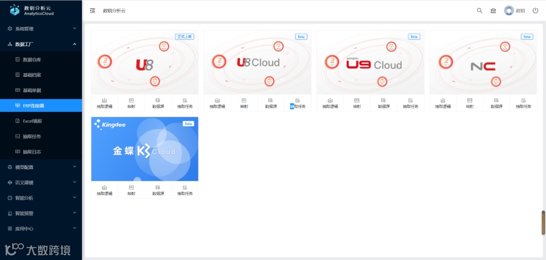 ☁ 独创的标准ERP数仓结构,一键连接ERP,实现国内主流ERP的广泛连接。