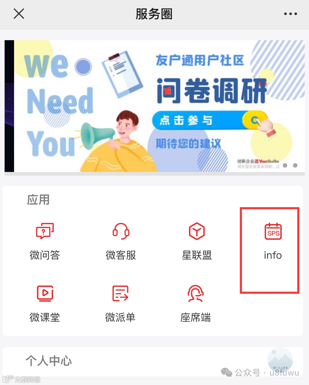 进入用友友户通公众号,点击菜单栏【客户成功】-【U8服务中心】,进入“个人中心”绑定手机号使用,之前绑过的不用重新绑定。