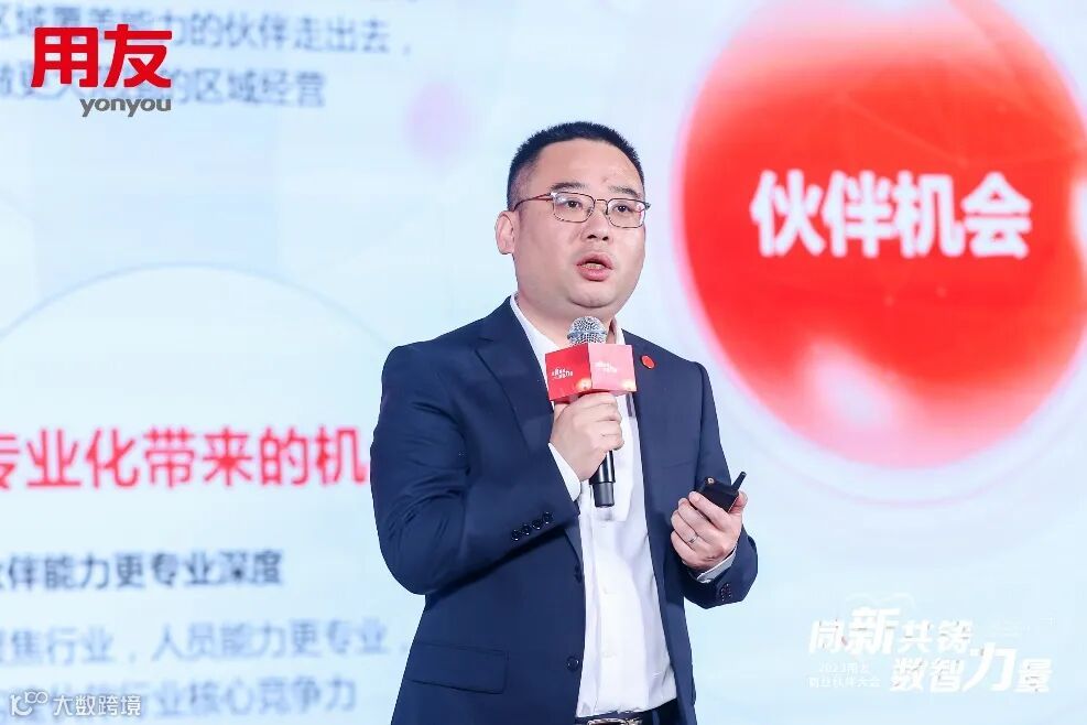 用友网络高端BG商业伙伴部总经理徐俊在大会上正式发布了2023高端BG商业伙伴计划:以行业化、共享化、专业化为核心,以高质量、良性可持续发展为目标,通过六大业务支持体系、区域顾问共享机制、区域伙伴赋能全面开放等全方位助力伙伴专业成长。徐俊指出,新的年度,用友将与高端伙伴一起双向奔赴、共担共享、共创共荣。