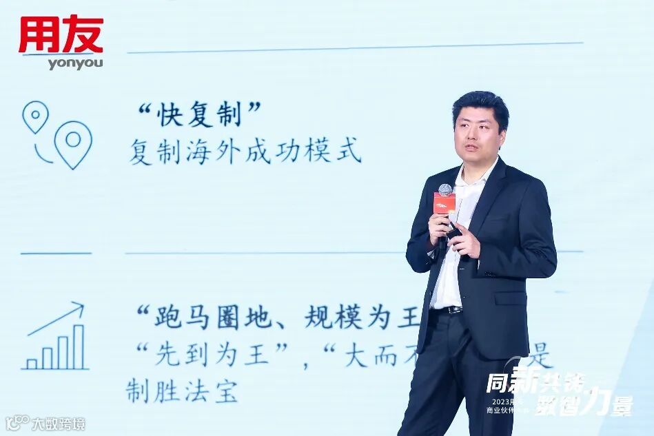 徐洋还重点强调,2023用友中端市场针对成长型企业,用友有持续创新的成长型企业数智化解决方案服务企业全场景应用,以YonSuite、U9 cloud、U8 cloud、U8+为核心,聚合形成强大的产品竞争力,引领SaaS云服务,全面覆盖不同类型的客户。并重点介绍了用友YonSuite与用友U9 cloud全新的数智化场景与新的特性,全面展示了产品的竞争优势,并通过浙江净禾总经理陈骧与大同机械财务总监姜树峰他们的介绍,再次印证了用友产品的绝对领先优势。
