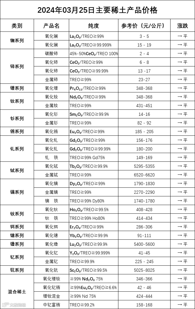 主要稀土价格