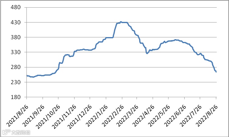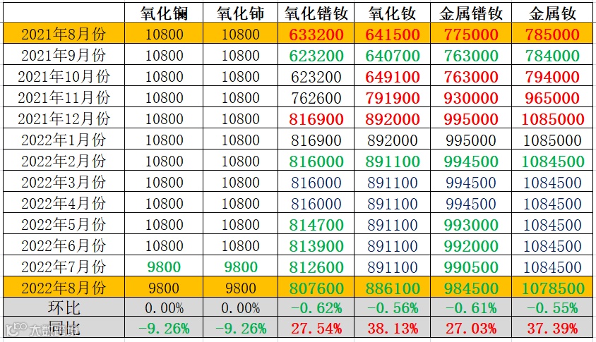 图1 镨钕系轻稀土挂牌价格走势图(2021年8月-2022年8月)