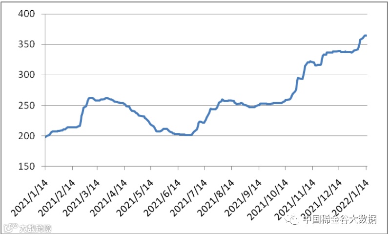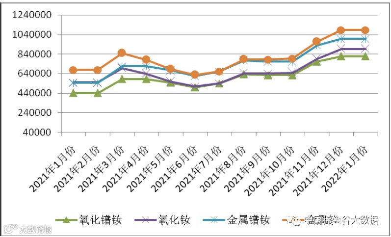 图1 镨钕系轻稀土挂牌价格走势图(202101-202201)