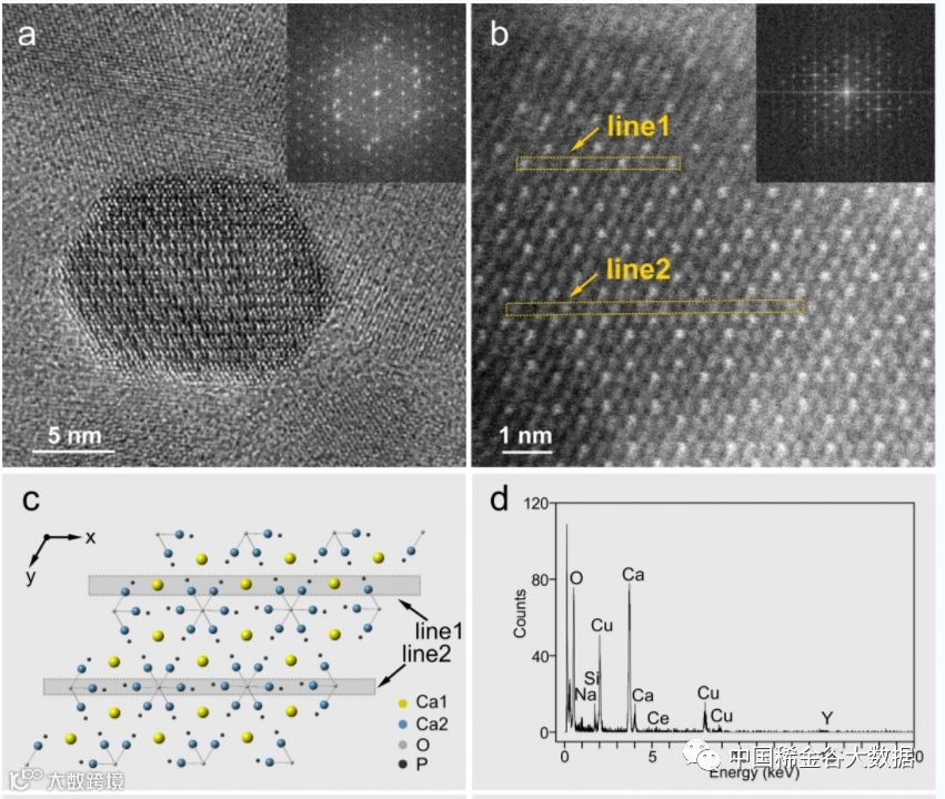 中山大学地球科学与工程学院孙晓明教授指导的一年级博士生廖健林等采用中北太平洋的深海沉积物样品对此开展研究,取得新进展。全岩地球化学分析数据表明稀土元素与磷酸钙存在强烈的正相关关系,指示磷灰石是一种重要的稀土赋存矿物。廖健林等从纳米地球化学的角度切入,探讨磷灰石在沉积过程中的稀土元素分布和富集特征。扫描电镜图像表明富集稀土的磷灰石大多数是海洋生物遗骸,采用激光剥蚀与电感耦合等离子体质谱图联用(LA-ICP-MS)的面扫技术,生物质磷灰石内部的稀土元素分布情况得以呈现,其分布特征暗示:稀土元素是在生物体之后由外而内扩散进入到磷灰石内部。利用目前技术最顶尖的球差矫正透射电镜(Titan),得以在原子尺度直观呈现了磷灰石晶格中以取代机制赋存的稀土元素。