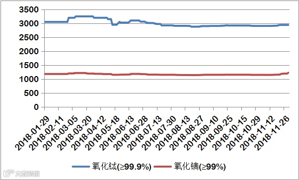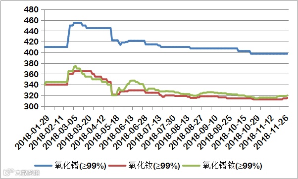 2018年氧化镨(钕、镨钕)价格走势图 元/公斤