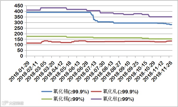 2018年氧化铕(钆、钬、铒)价格走势图 元/公斤