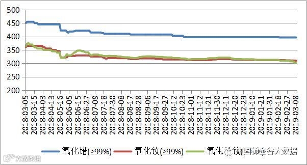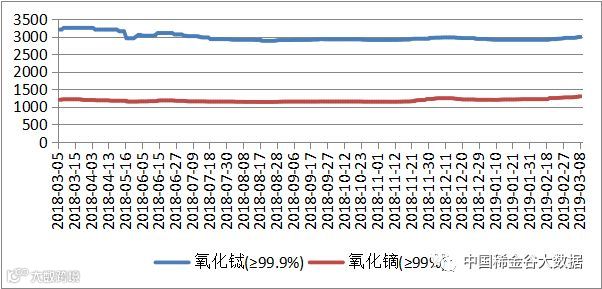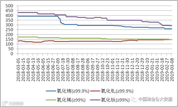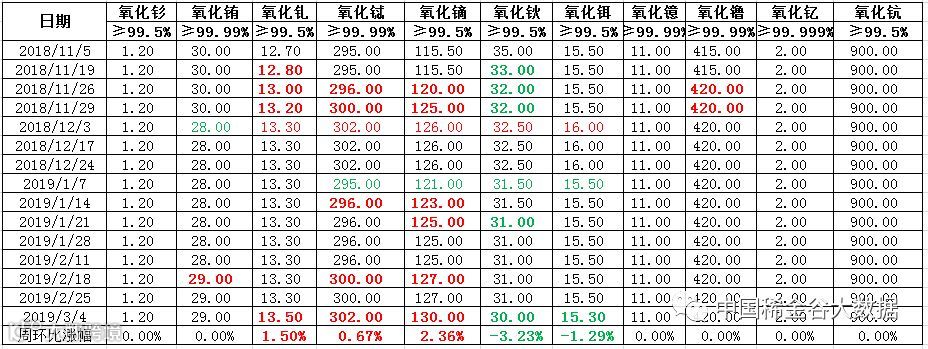 表一 中重稀土氧化物2018年11月-2019年3月挂牌价格 万元/吨