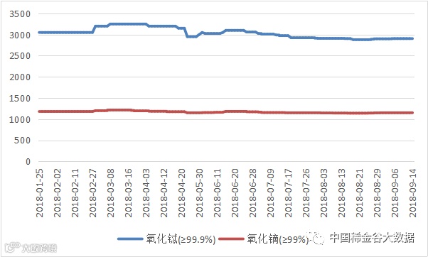 2018年氧化铽(镝)价格走势图 元/公斤