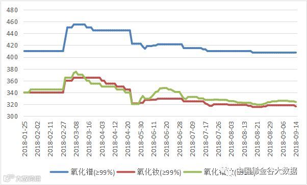 2018年氧化镨钕(钕、镨)价格走势图 元/公斤