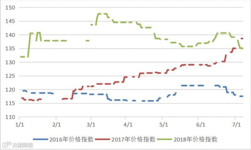 2016-2018年稀土价格指数同期走势图