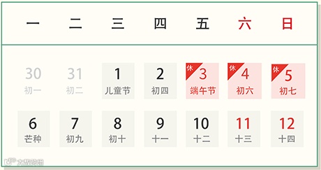 放假时间为:2022年6月3日至6月5日,共3天。6月6日上班。