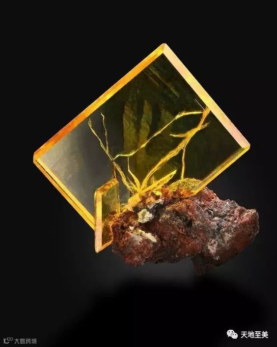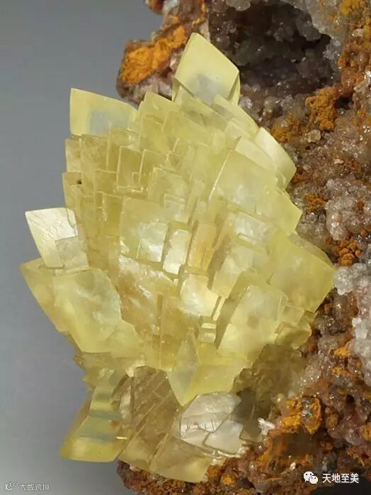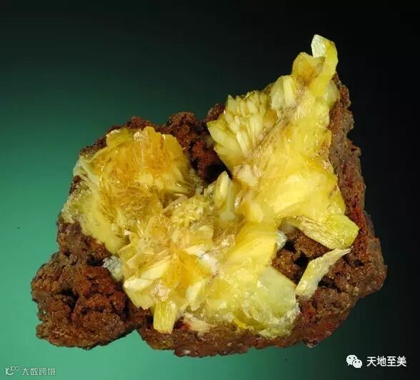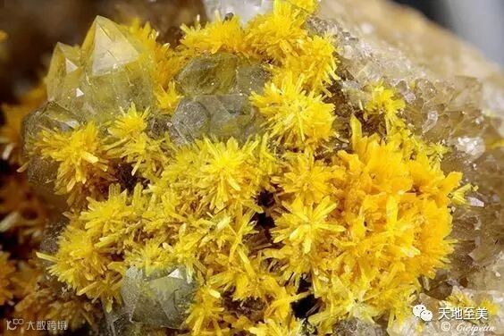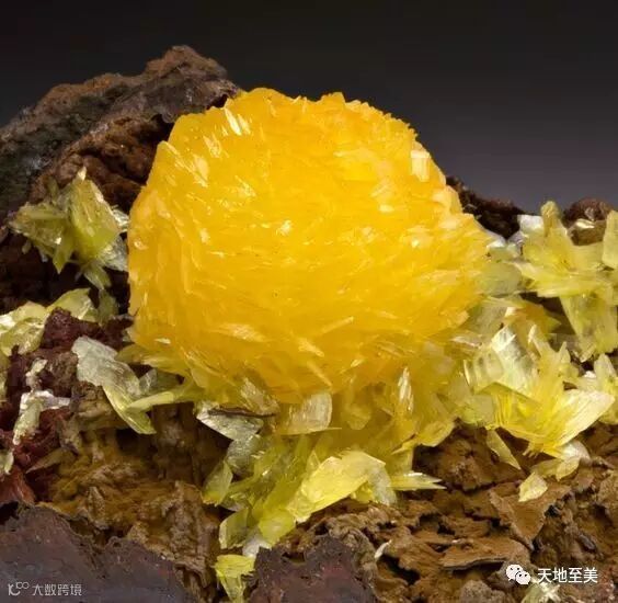 黄色的硅灰石含铜赤铁矿(Yellow Datolite with Copper and Hematite):