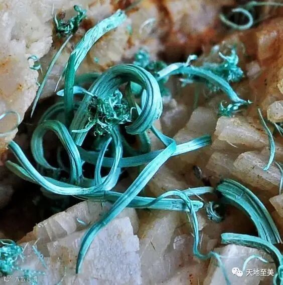 石英中的斜硅铝铜矿(Ajoite in Quartz ):