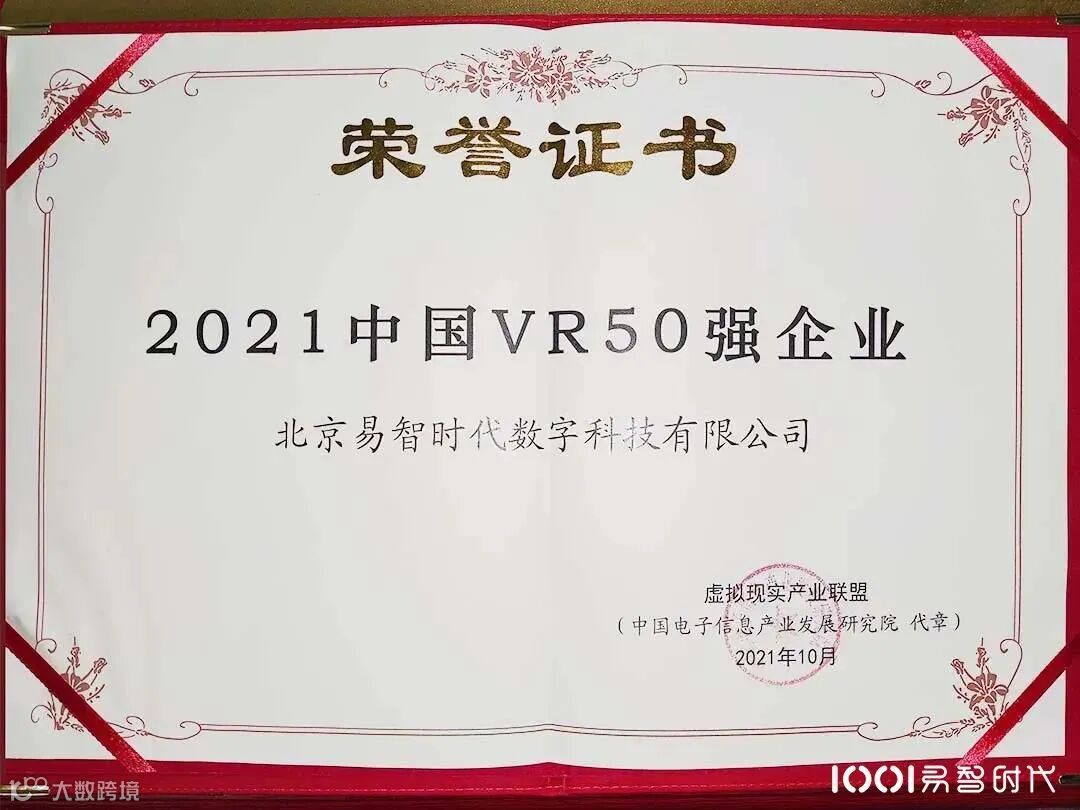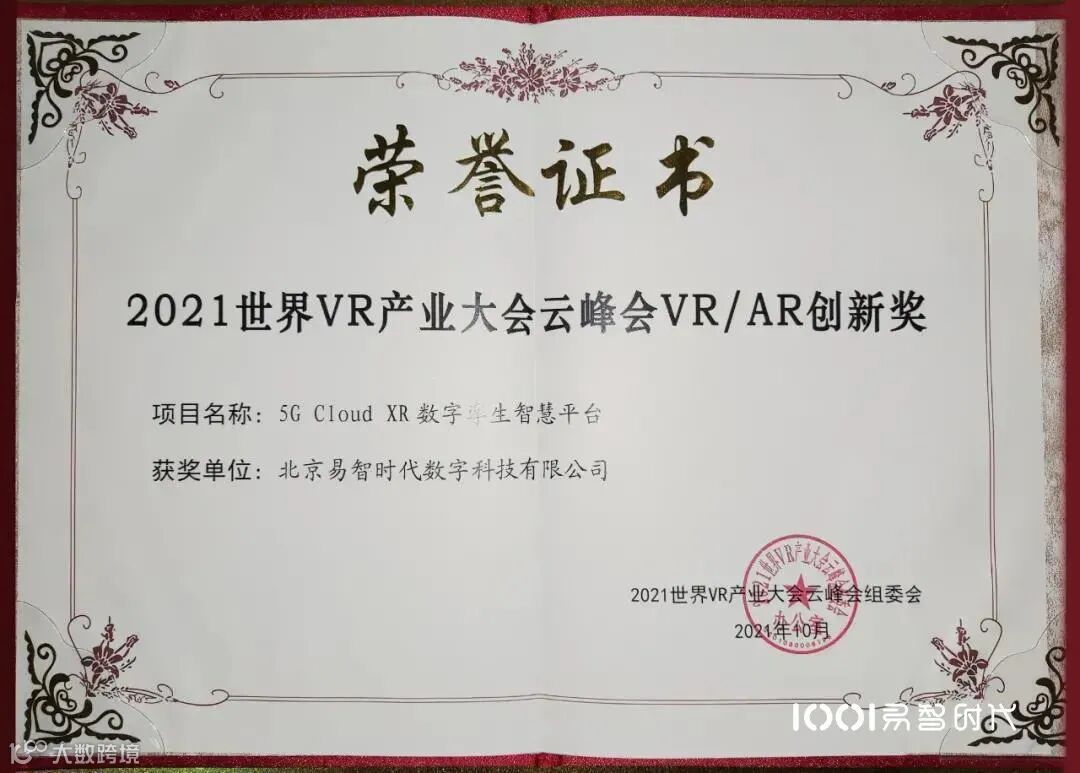 易智时代联合中国信通院、中国移动承办2021世界VR产业大会“制造分论坛”,蝉联三届“中国VR50强企业”并荣获“VR/AR创新奖”